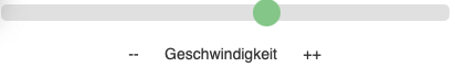 Mit diesem Schieberegler lässt sich einstellen, wie schnell ein Turtle-Programm ablaufen soll. Schiebt man den grünen Kreis mit der Maus nach links, läuft das Programm langsamer, schiebt man ihn nach rechtsm läuft es schneller ab. Beim Programmablauf wird der nächste auszuführende Block immer markiert, außer, wenn der Schieberegler ganz rechts steht. |
